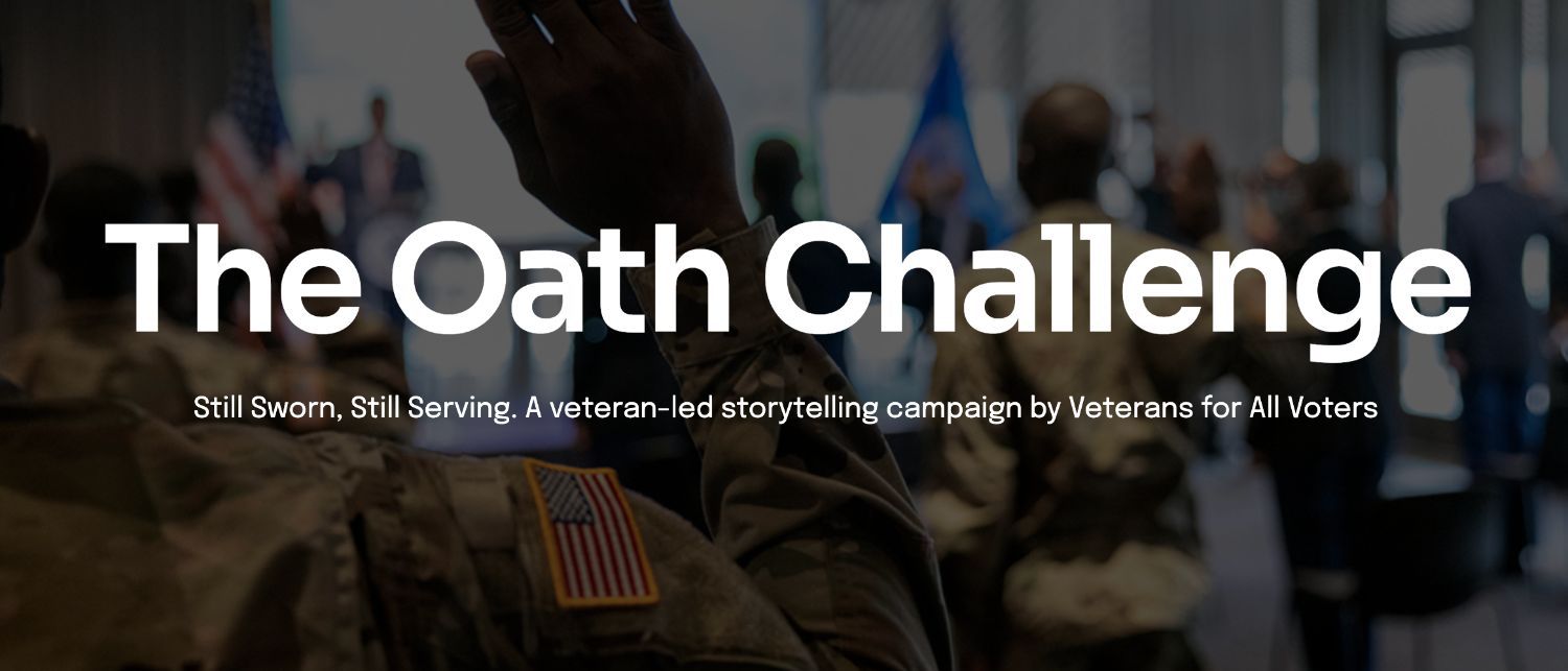 | | | |  | Are you a veteran? Our friends at Veterans for All Voters are asking veterans nationwide to renew their Oath of Office on camera and say, in their own words, what those 72 words demand of veterans today. Why it matters Veterans are among the most trusted voices in America. We served with people of every background and know how to put mission over politics. By renewing our oath in public, we show that our allegiance is to the Constitution, not to any other identity. We swear to a document and an ideal, to a promise and a duty that defines who we are and what we strive to become. It calls us to keep building the nation we serve, in uniform and long after. What we ask you to do -